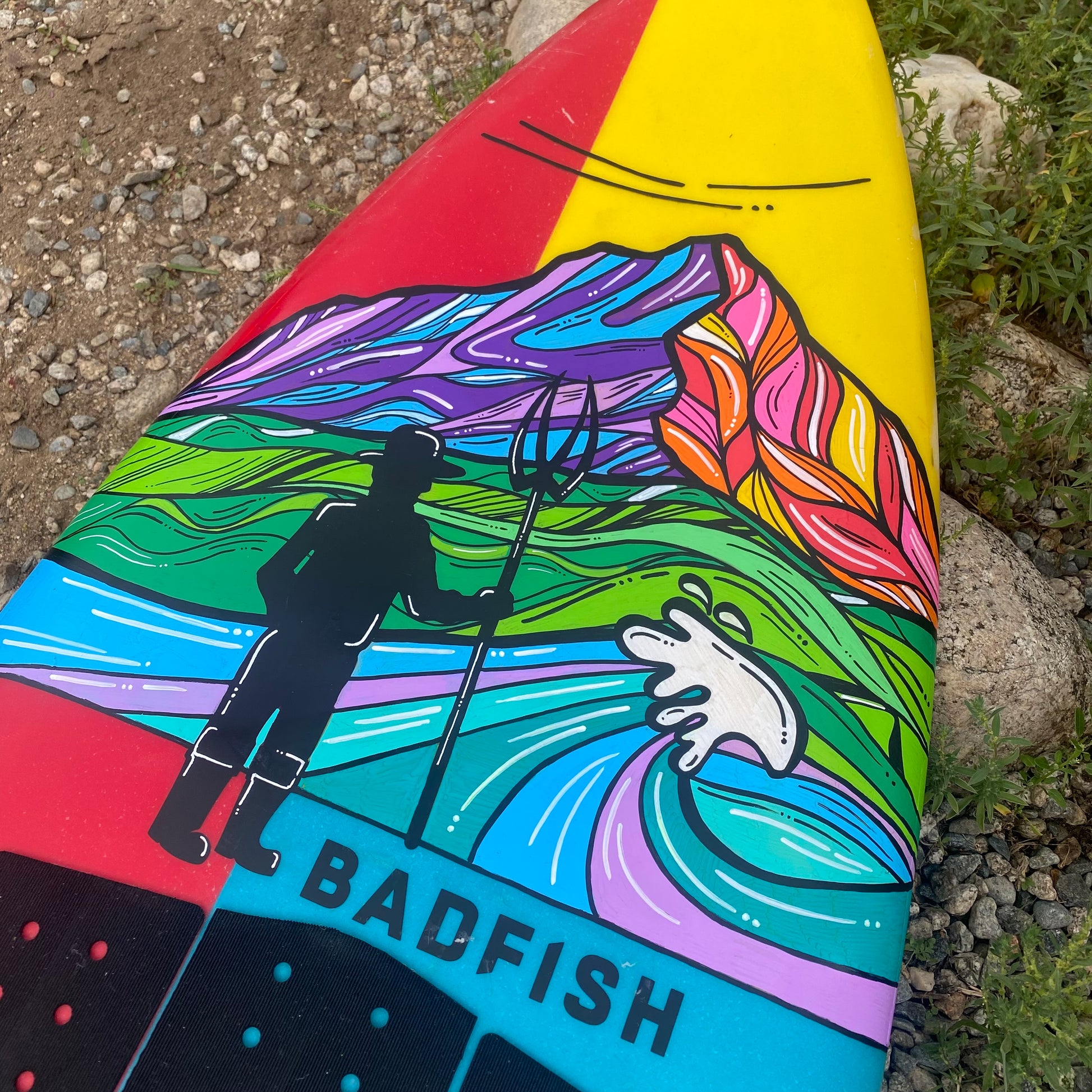 Hand painted art and sealed on a Badfish Surfboard. Cost is only for the artwork painted on the board.